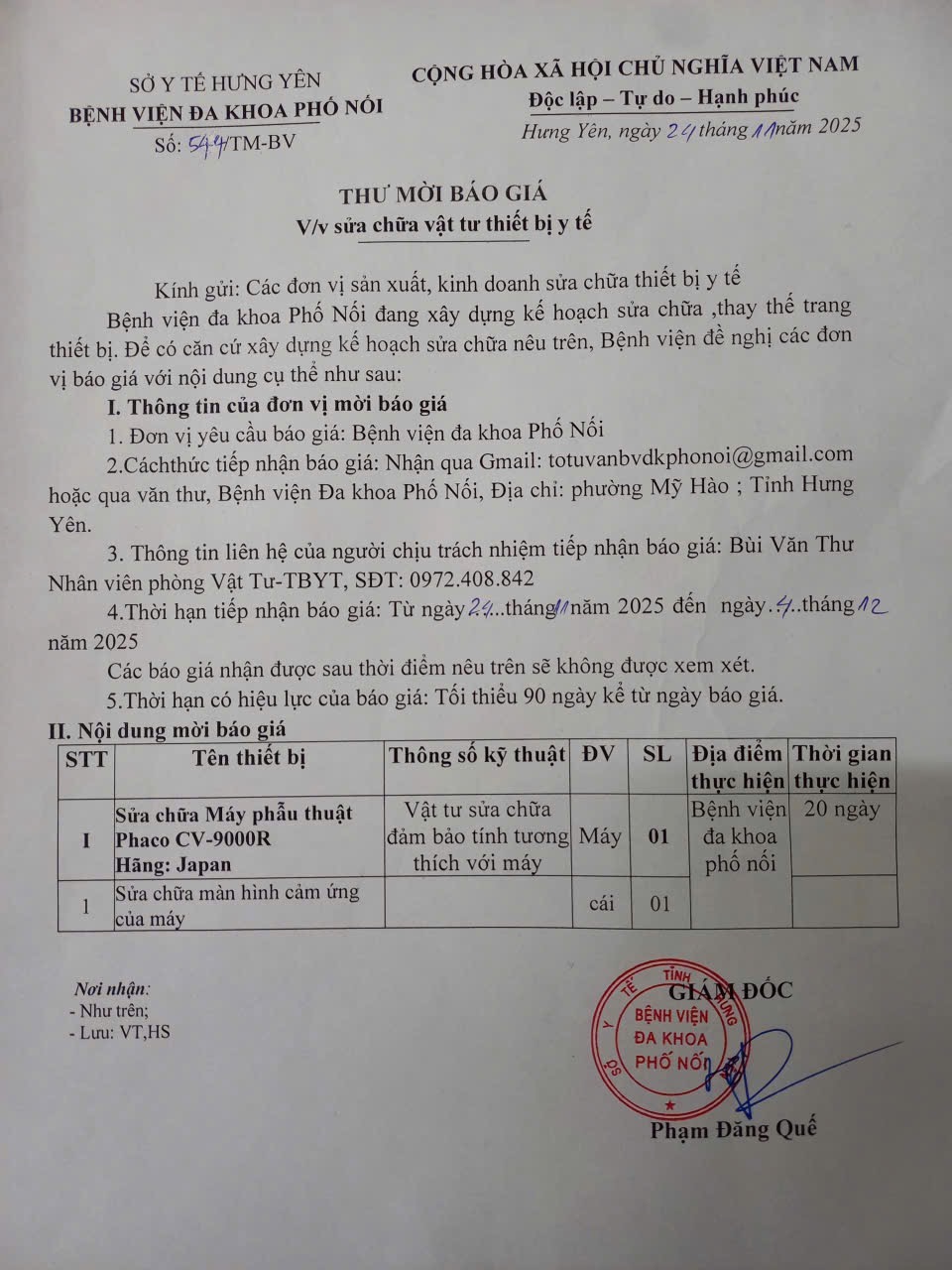 Thư mời báo giá